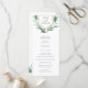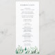 O programa de casamento botânico elegante apresenta os detalhes da sua cerimônia, tocado por um elemento geométrico de folha de cobre, enfeitado com folhagem de cor verde e flores brancas minúsculas, com seus nomes dentro. O verso lista os membros da sua festa de casamento com campos de texto facilmente editáveis. Coordena-se com a nossa coleção de convites para casamento de Estufa. Use os campos modelo para adicionar informações sobre a sua cerimônia e a parte nobre e clique em "Personalizar" para reposicionar os elementos, se necessário.
