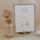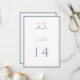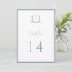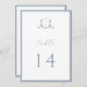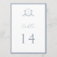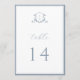 Monograma de casamento Elegante do Crest Botânico, cartão de número da mesa. Vintage inspirou crista adornada com galhos botânicos. Recursos, elegante e empoeirado estilo design de tipografia azul, mistura de script e tipo negrito. Observe que os cartões de número de tabela devem ser solicitados individualmente.