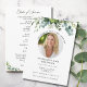 Personalize este programa simples e elegante com o nome, a foto e a mensagem do seu amado falecido. Honra e comemore a vida de seu amado com este moderno modelo do programa de funeral floral do eucalipto. Fácil de personalizar texto e foto. As nossas sentidas condolências e orações estão convosco durante este período muito difícil.