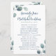 Lindos e elegantes galhos de eucalipto com aquarela rodeiam a tipografia clássica e o roteiro de caligrafia escovado neste adorável e moderno convite de casamento e no dia de estacionamentos. Coloque uma mesa rústica e romântica para seus amigos e família com este design ilustrado e pintado. Precisa de ajuda para a personalização? Adoraríamos ajudar. Envie-nos um e-mail em hello@thewinninginvitation.com para personalização complementar.