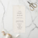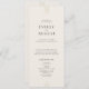 Este refinado programa de casamento de arte deco da Coleção Everly apresenta tipografia negra minimalista e sotaques dourados em fundo de creme mole. É perfeito para um visual elegante e eterno. Inclua os nomes do casal, a data e o local do casamento, um obrigado que você envia, a ordem de serviço, a festa de casamento e um memorial "em memória amorosa" opcional.