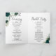 Torne fácil para seus convidados seguirem a cerimônia com esses lindos programas de casamento dobrados. O design apresenta rosas pintados manualmente de aquarela em tons de esmeralda e verde de menta. Há uma escrita moderna nos títulos com espaço para detalhes sobre a cerimônia, a festa noiva, uma foto, uma nota de agradecimento e um breve memorial. Na parte da frente lê-se "Fazemos" com um coração romântico bonito entre as cartas. Elegante mas divertido, estes programas são uma maravilhosa adição à sua papelaria de casamento.