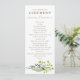 Elegante Wedding Program, cartão plano com título e texto editáveis. Moldura original desenhada à mão em verde de samambaias, folhas de pimenta e eucalipto de prata. (personalize a cor do plano de fundo a qualquer sua escolha); ilustração original de Becky Nimoy.