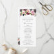 Um programa de casamento floral personalizável de botânica rústico. Apresenta uma granja floral de cor aquosa de figos, rosas roxos e peões com eucalipto e outros acentos verdes. Personalize acrescentando nomes, cerimônia de casamento e uma mensagem de obrigado. Estes programas de casamento floral roxo são perfeitos para primavera e casamentos outono.