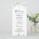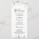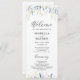 Elegante, azul empoeirado e flores amarelas selvagens, programa de casamento floral com belos buquês de flores silvestres pintados manualmente e bordas com moderno roteiro de caligrafia. Itens correspondentes disponíveis.