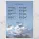 Um programa para um serviço memorial apresenta raios solares, nuvens e céu azul como o fundo. Uma foto do ente querido falecido que tem o fundo removido é apresentada no canto inferior direito. "In Loving Memory" e o nome do falecido está escrito na frente. Na parte de trás está a Ordem dos Serviços e Porta-Palavras. A citação, "Quando alguém que você ama se torna uma memória, a memória se torna um tesouro," é exibida na parte inferior do verso. Todos os textos e fotos são configurados como modelos para serem personalizados.