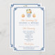 Smart Chinoiserie Programa de casamento Chic design em azul marinho e branco com pop de outono e borda chave grega.