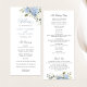 Programa Floral Blue Hydrangea Greenery Wedding. Ordem de Serviço de Casamento de Hydrangea White e Blue Elegante Floral. Modelo do Programa Formal de Casamento Tradicional