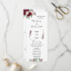 Cartão do programa de casamento com burgundy & greenery floral, pequenos rabiscos e nomes de caligrafia.