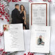 Esta design do romântico e clássico Natal ou programa de casamento com tema de inverno apresenta grupos de flores vibrantes vermelhas e brancas de inverno, pínus, bagas ocas e galhos rústicos, gráficos de texto modernos personalizados e campos de texto editáveis. As páginas dentro apresentam um modelo de foto e campos de texto com gráficos de texto personalizados. A parte traseira inclui um campo de texto e foto em memória.