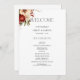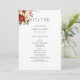 Esta design do romântico e clássico Natal ou programa de núpcias de inverno apresenta um aglomerado de flores vibrantes vermelhas e brancas de inverno, pínus, bagas ocas e galhos rústicos, gráficos de texto modernos personalizados e campos de texto editáveis. A parte traseira apresenta campos de texto adicionais e gráfico floral.