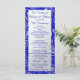 Este belo programa de casamento mostra seus detalhes sobre prata pura moldada com um típico motivo floral em prata em um contraste azul real. Você pode personalizar totalmente com o link personalizado. Esta é parte de uma suíte de casamento elegante que inclui um convite, envelope, menu e muitos outros itens.