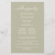 Uma simples folha de papel do programa de cerimônia do Casamento, com modelo, elegante minimalista floral, simples, escrita caligráfica com boas-vindas tipografia, em verde botânico e estilo clássico.