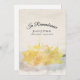 Lembre-se do seu amado e comemore sua vida com o bonito Programa de Memória Funeral das Flores Amarelas. Esta elegante e personalizada linha cronológica do serviço de homenagem à morte por floração apresenta uma fotografia botânica pintada por uma cor d'água de um buquê de flores de narciso amarelo. Personalize-o com as datas de nascimento e morte e a ordem da cerimônia de celebração do serviço da igreja.