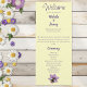 Uma abelha bonitinha senta-se suavemente entre duas delicadas flores de lavanda e folhas verdes frescas, todas colocadas sobre um pano de fundo amarelo macio e cremoso. Perfeito para um casamento que celebra o amor e a beleza do exterior.