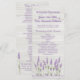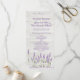 Este design apresenta flores lavandas roxas sobre um fundo de madeira leve. Adicione seus nomes e detalhes do casamento nesta design