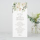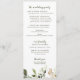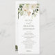 Programas Elegantes de Casamento com Flores Brancas de Aquarela e Verde: Este programa de casamento apresenta um belo buquê floral branco e verde / cor d'água foliar no topo. A parte traseira tem espaço para sua festa de casamento junto com um obrigado que você ou uma mensagem de memória na parte inferior.