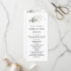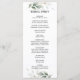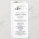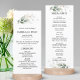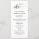 Entregue esses cartões elegantes do programa de cerimônia na cerimônia de casamento/serviço da igreja. Folhas botânicas de ouro verde-aquarelas. A frente do cartão tem lista de programas de cerimônia, a parte traseira do cartão tem a lista da festa de casamento e uma nota de agradecimento da noiva e do noivo. Perfeito para qualquer tema de casamento no inverno.