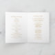 Folheto do programa de casamento do tema das folhas de ouro modernas. Compartilhe seus detalhes de casamento com este livreto do programa de casamento moderno e clássico. Este programa dobrado apresenta pontos falsos de configuração de folha de ouro com um roteiro elegante e uma simples tipografia sobre fundo branco. Estes programas de casamento de folha de ouro são perfeitos para qualquer tema de casamento e estação. Personalize adicionando seus próprios detalhes.