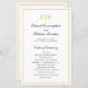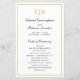 Um programa de casamento elegante com seu monograma e uma fronteira em ouro falso em volta de seu detalhe. Seus nomes e cabeçalhos estão na caligrafia. A frente tem sua ordem de cerimônia e a parte de trás tem sua festa de casamento e obrigado. Estes programas de casamento simples e clássicos são excelente de um casamento formal e são impressos em folhas de papel para uma opção barata e econômica.