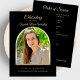 Este lindo programa de funeral apresenta a foto de seu ente querido na frente dentro de um arco com uma moldura dourada. As palavras "Celebrando a Vida de (NOME)" aparecem acima da sua foto. Abaixo da sua foto estão as datas e palavras de lembrança carinhosa que você pode adicionar. No verso, está a ordem do serviço que você pode personalizar para o seu evento específico. Por favor, tenha cuidado para garantir que tudo caiba no espaço fornecido, pois irá imprimir exatamente como você vê na tela. Você também pode personalizar um agradecimento da família. direitos autorais Sympathy Thank You por Kathy Henis