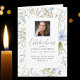 Uma bela celebração do programa funerário de vida que inclui uma fronteira pintada de mão de flores azuis e silvestres. Adicione suas fotos e texto personalizado a todos os quatro lados - um obituário, ordem do serviço, poema, obrigado da mensagem, etc. Este programa é tão fácil de personalizar - basta clicar em "personalizar este modelo" para alterar o texto e as fotos ou clicar em editar para personalizar ainda mais. Este é, de fato, um programa de um tipo que as pessoas irão apreciar para sempre.