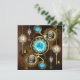 Lentes de turquesa com relógio antigo com engrenagens de latão e chaves de ouro sobre fundo enferrujado e marrom. Estilo Steampunk.