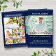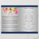 Modelo de programa funerário com um fundo azul clássico e banda de nome prateado. Inclui uma grande colagem de fotos no verso com espaço para 10 fotos, além de mais 3 fotos acima do obituário e uma página para a ordem de serviço (ou qualquer outro texto como poemas ou leituras) no dentro. Todo texto é personalizável, então criar um belo programa para o seu amado é rápido e fácil. Este programa funerário impressão de dois lados em uma folha de solteiro de papel Carta (8,5 x 11 polegadas). Quando dobrado, isso cria um livreto com 4 páginas de metade do tamanho da letra (8,5 x 5,5 polegadas por página).