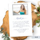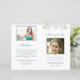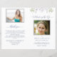 Um bom memorial funerário ou uma celebração de um programa de vida com lindos detalhes florais e verdes brancos de cor aquática. Sinta-se à vontade para usar nossas caixas de texto de modelo para adicionar qualquer detalhe ou texto que você quiser, o nosso é simplesmente um exemplo. Oportunidade de adicionar duas fotografias, uma na frente e uma segunda fotografia na parte traseira, juntamente com uma obrigado que você envia e qualquer outro texto que você preferir. NOTA: o programa vem em uma folha de papel de qualidade plana que precisaria ser dobrada manualmente assim que for recebida. Coordenando a Celebração do Cartão de Convite à Vida, guia, Assinatura de Foto de Boas-vindas e notas de agradecimento também disponíveis. Parte do nosso "Delicate Funeral, Memorial Collection".