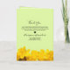 Celebração do programa de vida apresentando no cobrir frontal uma foto do seu ente querido, seu nome, datas, local da memória, data do evento e daffodils primavera amarelo. Na dentro está um obituário e uma ordem de serviço; e atrás, uma nota de agradecimento e o local do acordar.
