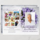 No programa de funeral da memória amorosa, com uma bela foto de buquê roxo por toda parte. Inclui espaço para um obituário, ordem de serviço, poemas e muito mais para criar um belo programa para o seu amado. Todo texto é fácil de editar e totalmente personalizável. Este programa funerário impressão de dois lados em uma folha de solteiro de papel Carta (8,5 x 11 polegadas). Quando dobrado, isso cria um livreto com 4 páginas de metade do tamanho da letra (8,5 x 5,5 polegadas por página).