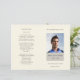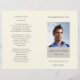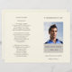 Folga moderna do Programa Funeral Ordem de Serviço com 4 páginas, com janela para adicionar uma foto do seu ente querido, em um fundo de creme leve com texto em cinza - modelo totalmente personalizável.