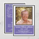 Personalize um programa de funeral com a foto do falecido amado. O plano de fundo apresenta uma borda preta com retângulos roxos atrás de um script branco. A citação, "A vida é eterna, e o amor é imortal, e a morte é apenas um horizonte; e um horizonte não é nada além do limite de nossa visão", de Rossiter Worthington Raymond está na frente abaixo da foto, nome e anos de vida. Na parte de trás está espaço para a ordem dos serviços para o funeral, a lista de palestrantes, e outra citação, "Como um pássaro cantando na chuva, que memórias agradáveis sobrevivem no tempo da tristeza", de Robert Louis Stevenson. Fotos e texto são configurados para serem personalizados com sua própria foto e texto. Se precisar de ajuda para personalizar, entre em contato comigo através do bate-papo.