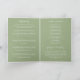 Programa moderno de memorial/funeral com um design de tipografia contemporânea com os cabeçalhos em tipografia de script elegante juntamente com os detalhes de seu evento em um layout simples e mínimo. O tema de cor é verde-sábio e pode ser alterado na ferramenta de edição de design. Este programa foi projetado sem uma foto, mas você pode adicionar um na ferramenta de edição de design.