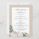 Este programa de Mulher elegante floral de na moda funerária com buquê pincelado rosas rosas e flores rústicas, uma foto do seu ente querido em quadro branco, seu nome e datas de vida e texto em memória amorosa em fundo bege elegante. O reverso deste programa é bege, colorido com flores pálidas chicas, cor-de-rosa, com serviço de ordem funerária.