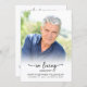 Honor your loved one with a simple yet elegant and modern Celebration of Life or funeral program. This program features a cherished full-bleed photo on the front with the sentiment IN LOVING MEMORY and life dates. The back side includes an order of service template, fully editable to customize for your service, creating a thoughtful keepsake for family and friends. Easy to personalize with your picture and text, this program is a beautiful way to celebrate a life well lived. ASSISTANCE: For help with design modification or if you would like coordinating items, contact the designer BEFORE ORDERING via the Zazzle Chat MESSAGE tab or email makeitaboutyoustore@gmail.com.