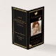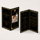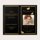 Um elegante programa de 4 páginas. Um fundo preto, uma falso estrutura dourada e espaço para a sua foto. Decorado com 3 borboletas de ouro. Personalize e adicione nome, datas e texto.
