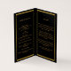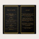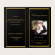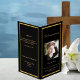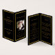 Um elegante programa de 4 páginas. Um fundo preto, uma falso estrutura dourada e espaço para a sua foto. Personalize e adicione nome, datas e texto.