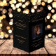 Um elegante programa de 4 páginas. Um fundo preto, brilhos de ouro e espaço para sua foto. Personalize e adicione nome, datas e texto.
