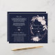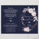 Design de Casamento Geométrico das Flores Brancas Douradas Elegantes Rosa. Apresenta elegantes flores brancas rosa douradas, quadro geométrico rosa dourado, divisor floral dourado rosa no verso, tudo sobre fundo azul escuro. Use a ferramenta Personalizar para adicionar suas informações, alterar a cor de fundo. Para obter itens correspondentes, visite minha Coleção de Flores Brancas Douradas Rosa.