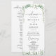 Este programa de casamento de eucalipto minimalista geométrico é perfeito para um casamento moderno. O design apresenta galhos e folhas botânicas elegantes e desenhadas a aquarela, desenhadas à mão, adornando quadros geométricos.
