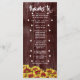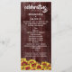 Adicione um toque de charme retrô no seu grande dia com este programa rústico de tema floral, que apresenta a cerimônia de casamento e os participantes com um buquê de mini girassóis vibrantes e de duas cores que florescem no outono, postos em uma cerca desgastada pelo tempo. Personalize com os nomes dos noivos, local do evento, data da recepção, detalhes da cerimônia e participantes. Perfeito para temas de casamento rústicos e de outono!