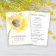 Lembre-se do seu amado e comemore sua vida com o bonito Sunflower Yellow no Vase Watercolor Funeral Memorial Program. Esta alegre e personalizada linha cronológica do serviço de homenagem à morte florida apresenta uma fotografia floral pintada por uma coloração aquosa digital de um girassol amarelo sobre um caule verde num vaso de vidro com fundo branco. Personalize-o com detalhes pessoais e com a ordem da cerimônia de celebração do serviço da igreja.