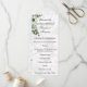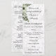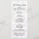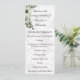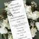 Este encantador programa de casamento da Ordem da Cerimônia apresenta um tema encantador de feitiço misturado com um clássico, inspirado na vintagem. Apresenta uma bela coroa verde de morango com flores no canto para um delicioso toque rústico, com uma bela cor damasco no fundo em tons suaves de cinza e branco. Há mais espaço no verso para mais detalhes, pois ele apresenta apenas a cor damasco sem a coroa.