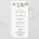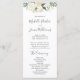 Elegante programa de casamento floral com peões de cor d'água pálidos com sotaques de folhagem dourada (faux) e verde.