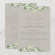 Um elegante programa de casamento/ordem da cerimônia de inverno bege elegante, com um esboço condensado da cerimônia e uma mensagem de agradecimento na frente e uma lista para um grande grupo de casamento no verso. Com uma borda de neve pintada à mão e uma dispersão de pontos. Todo o texto é totalmente editável. Por favor, visualize esta Coleção na minha loja para programas com palavras/alinhamentos alternativos e em diferentes tamanhos/cores/formatos. Itens coordenados também disponíveis.