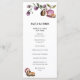 Bonito, elegante, chic e modernos programas de cerimônia de casamento para sua ocasião especial! Ampolas de flores de magnólia violeta de aquarela em folhas verdes e suaves, com bonito macarões doces no topo do seu programa de cerimônias de casamento. O verso lista os membros da sua festa de casamento com campos de texto facilmente editáveis. Use os campos modelo para adicionar informações sobre sua cerimônia e noivado e clique em "Personalizar" para reposicionar elementos, se necessário. Projetado para coordenar com nossas Macarões Felizes | Casamento e coleção de convites para eventos da Violet Floral.