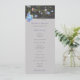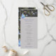 Uma ilustração original de flores românticas de verão, hibiscos azuis e roxos, crisântemos brancos com flores em pompom, com videiras verdes giratórias e silhueta de andorinhas cor-de-rosa caprichosas em um fundo de lousa / cinza carvão escuro. Um belo design floral tropical e elegante tema de casamento de jardim.