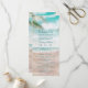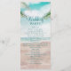 Cena de praia pintada por brisa de ilha, com Ondas de Oceano, praia de Sandy e Palm Trees, com um belo céu azul-lacrimogênio. Com Fontes Modernas De Script De Tipografia. Uma Praia Tropical de Verão, Ou design de casamento de destino - Programa de Cerimônia de Casamento Personalizado! Veja meu compro para ver a suíte de casamento inteira para este design!