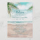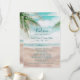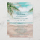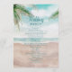 Cena de praia pintada por brisa de ilha, com Ondas de Oceano, praia de Sandy e Palm Trees, com um belo céu azul-lacrimogênio. Com Fontes Modernas De Script De Tipografia. Uma Praia Tropical de Verão, Ou design de casamento de destino - Programa de Cerimônia de Casamento Personalizado! Veja meu compro para ver a suíte de casamento inteira para este design!